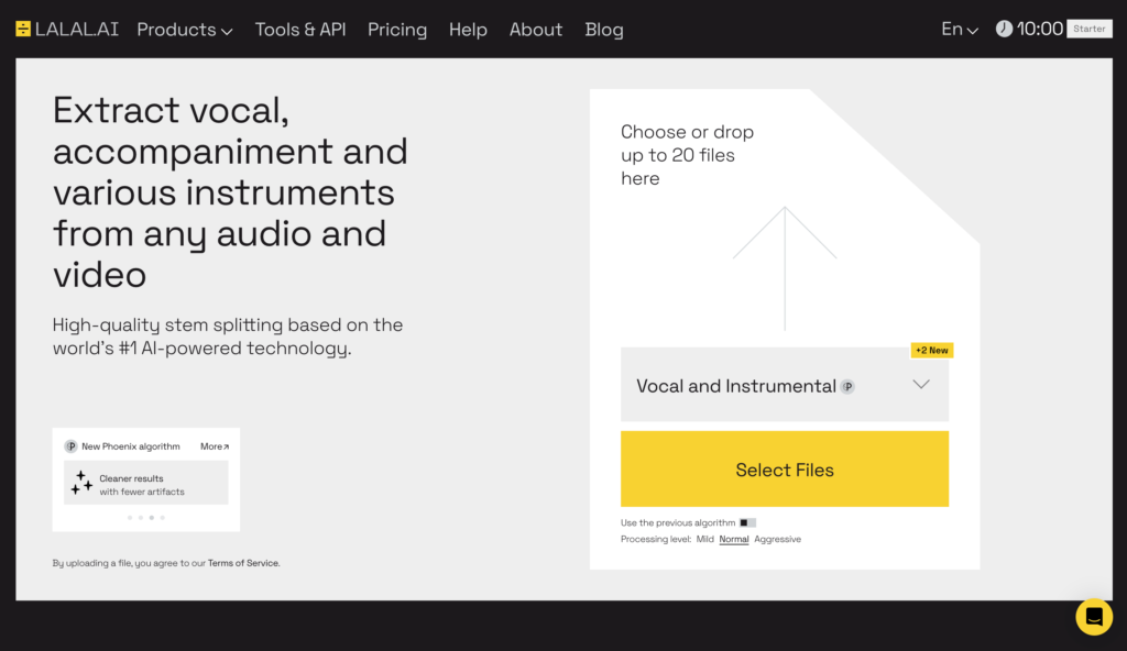 LALAL.AI’s Voice Cleaner is a revolutionary tool that takes audio cleaning to the next level. Whether you’re a podcaster, musician, or content creator, having clean and professional-sounding audio is essential. That’s where LALAL.AI’s Voice Cleaner comes in. With its advanced AI-powered technology, LALAL.AI’s Voice Cleaner can effortlessly remove background music, vocal plosives, mic rumble, and other unwanted noises from your audio recordings. It analyzes the audio and intelligently separates the vocals from the background, allowing you to isolate and enhance the clarity of the vocals. Gone are the days of spending hours manually removing unwanted noise or investing in expensive audio editing software. LALAL.AI’s Voice Cleaner streamlines the process, making it fast, easy, and efficient. It delivers outstanding results without compromising the quality of your audio. Whether you’re looking to clean up podcast episodes, music tracks, voiceovers, or any other type of audio recording, LALAL.AI’s Voice Cleaner has you covered. It’s the perfect solution for achieving professional-grade audio without the hassle.