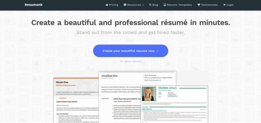Resumonk is a game-changing online resume builder that empowers job seekers to easily create professional and visually appealing resumes. With its user-friendly interface and a wide selection of customizable templates, Resumonk simplifies the resume creation process. Whether you’re a recent graduate, a seasoned professional, or making a career change, Resumonk offers the tools and features to showcase your skills and experience effectively. Stand out from the competition with a well-crafted resume that highlights your strengths and achievements. Maximize your chances of landing your dream job with Resumonk the ultimate resume-building tool for career success.