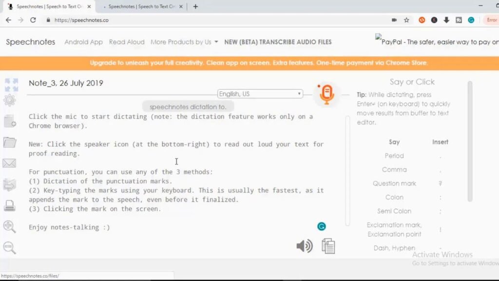 Speech Notes is a web-based application that allows users to convert spoken words into written text. It is designed to provide a convenient and efficient way to transcribe voice recordings or dictate text in real time. With Speechnotes, users can simply speak into their device’s microphone, and the tool will accurately transcribe their speech into written text. It helps streamline the process of note-taking, writing, and creating content by eliminating the need for manual typing. The tool provides a clean and intuitive text editor where users can make edits, format their text, and apply basic formatting options. Speech notes also support automatic saving, ensuring that your work is always saved, even if you accidentally close the browser or lose internet connectivity.